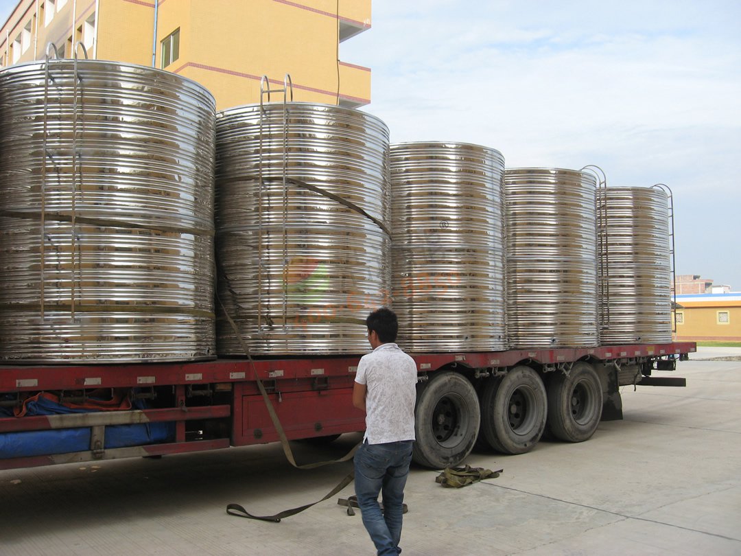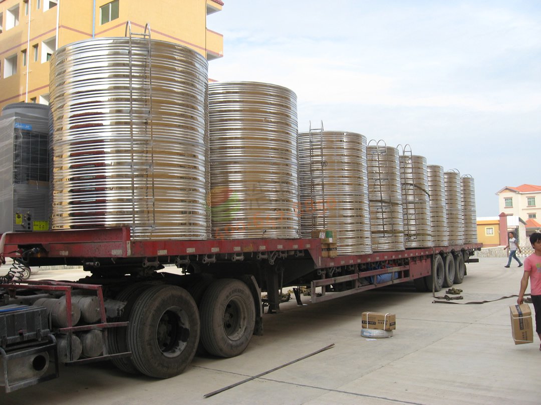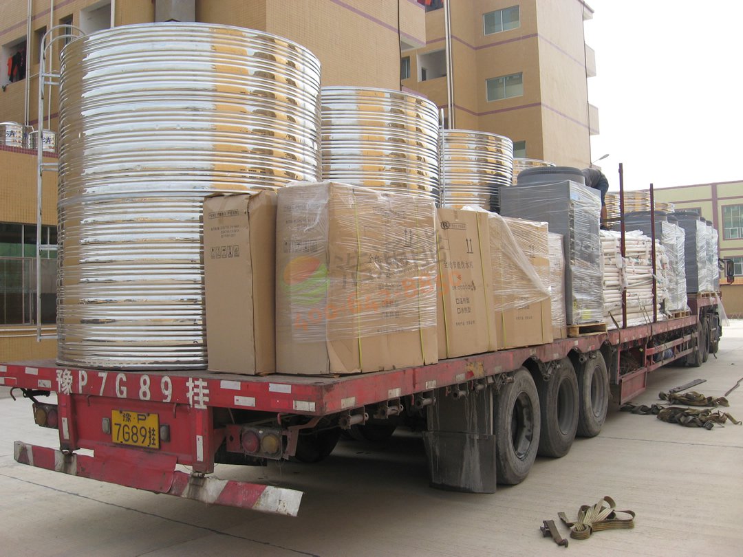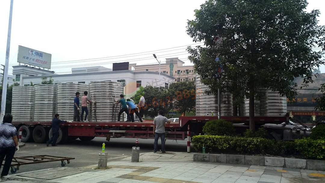 廣東華立中英文學(xué)校學(xué)生宿舍14號(hào)公寓——80噸空氣源熱泵熱水項(xiàng)目-水箱裝車