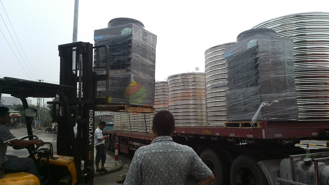 廣東華立中英文學(xué)校學(xué)生宿舍14號(hào)公寓——80噸空氣源熱泵熱水項(xiàng)目-裝車完畢