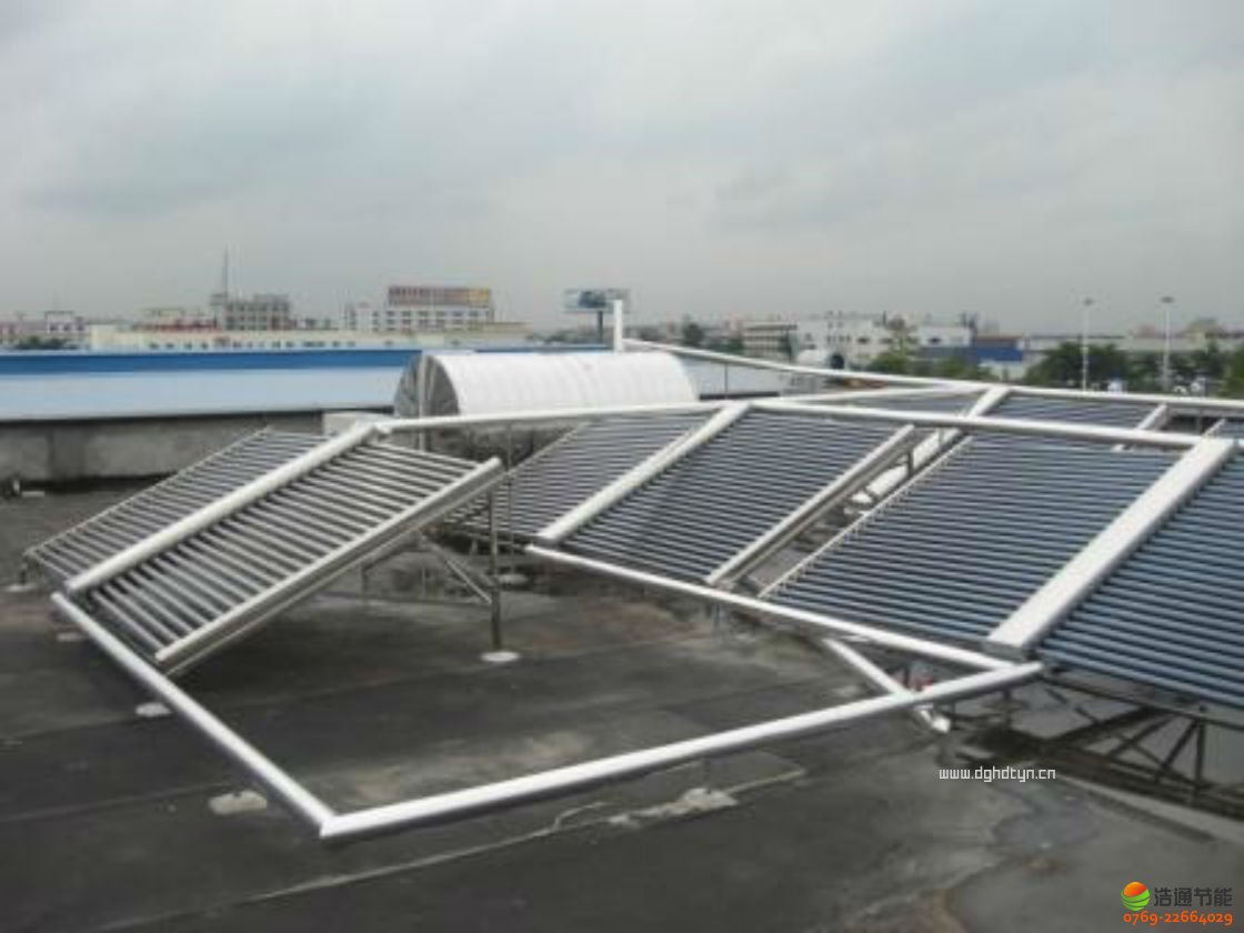 太陽能熱水設(shè)備是當(dāng)今最安全、節(jié)能、環(huán)保的熱水設(shè)備。東莞市每年有280天的晴天,可利用太陽能免費產(chǎn)到50-80℃的熱水;其余陰雨天太陽能免費產(chǎn)到30-45℃,再利用電加熱到50℃。整套熱水設(shè)備全智能運行穩(wěn)定、可靠,每天無需人員開關(guān),為企業(yè)提供多項方便,并節(jié)省70%的費用。