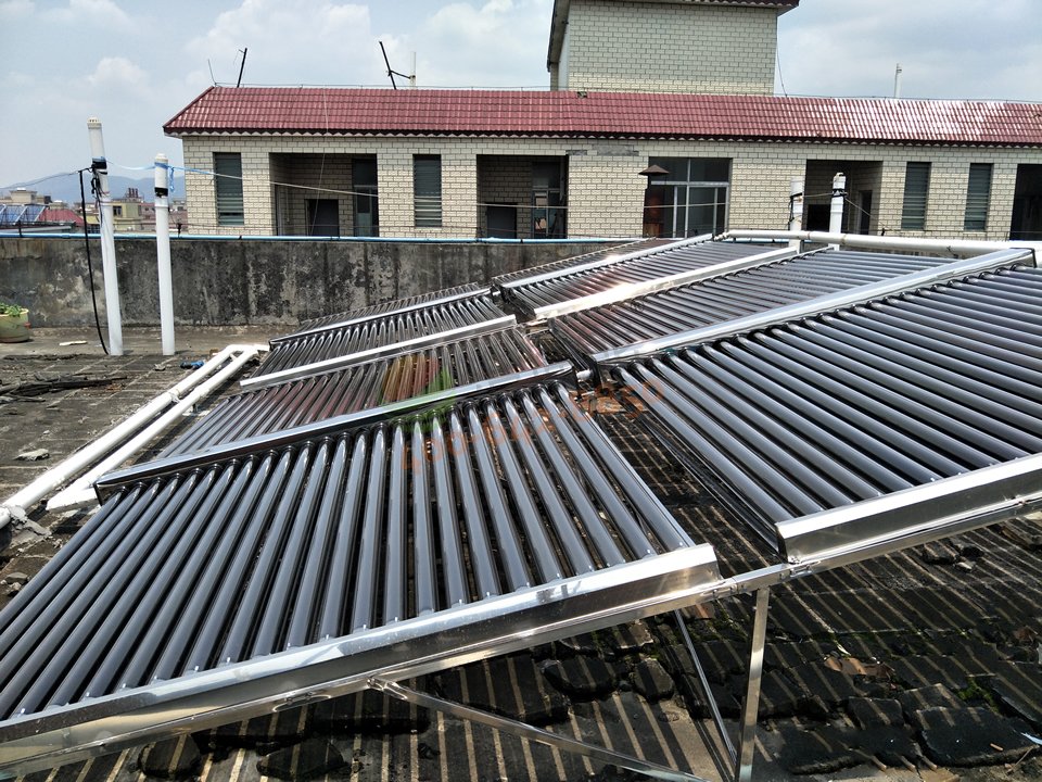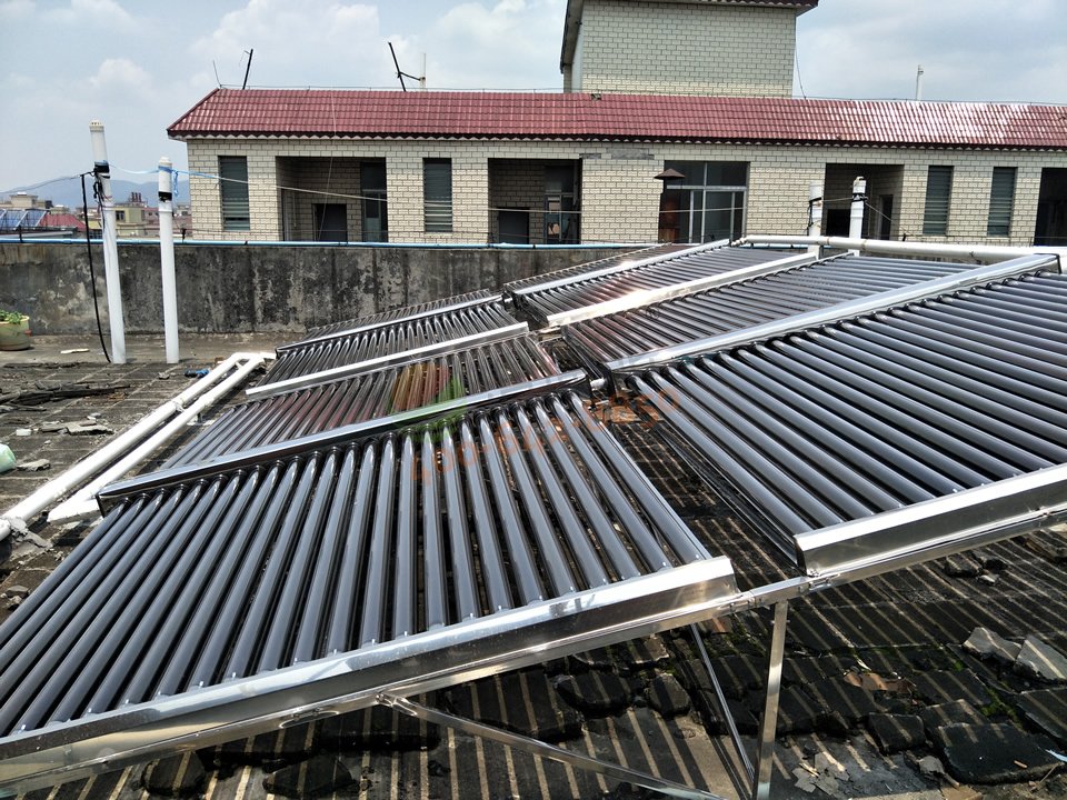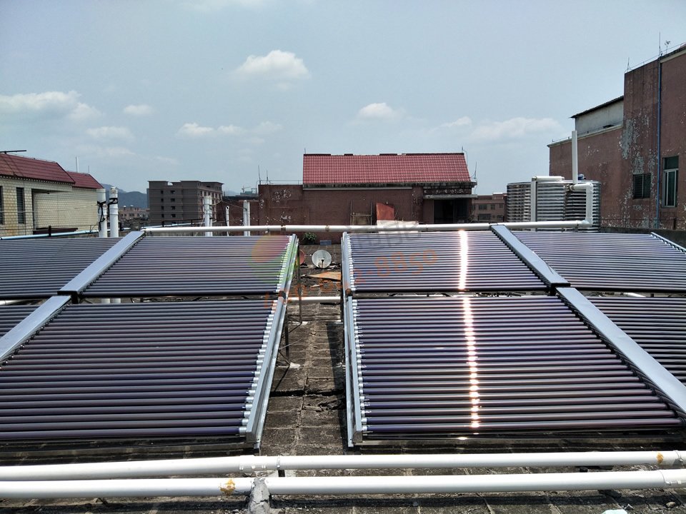 廣州市樂基電子有限公司——2噸太陽能+空氣能熱水工程真空管集熱器連接管道