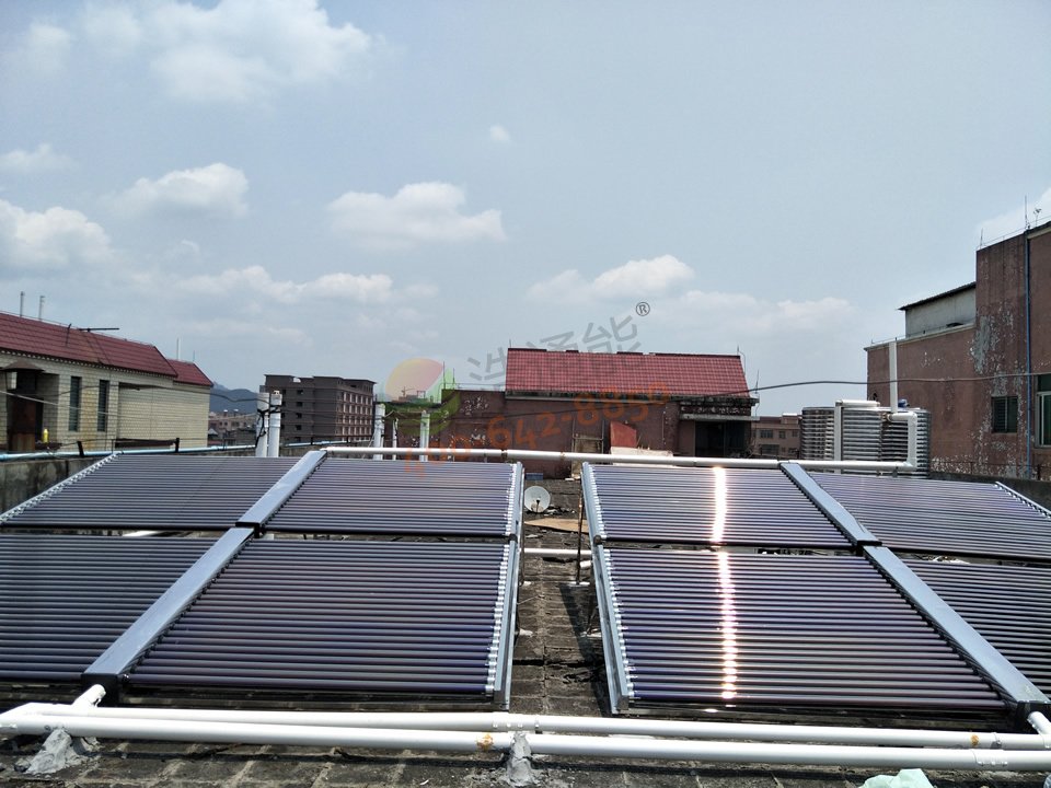 廣州市樂基電子有限公司——2噸太陽能+空氣能熱水工程真空管安裝