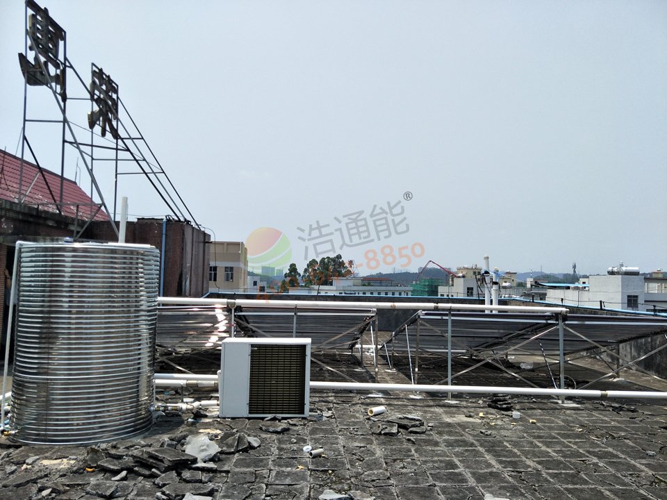 廣州市樂基電子有限公司——2噸太陽能+空氣能熱水工程水箱與機組安裝圖