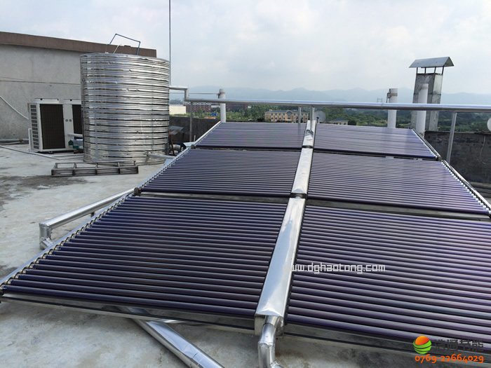 1 日供10噸熱水的太陽能熱水器+空氣能熱水器 浩通太陽能熱水器ZZB8.0-50BCG真空管16組與GT-SKR100直熱循環(huán)空氣能熱水機1臺,及相關配套設施。10噸保溫水箱1個